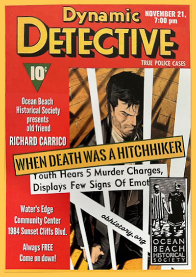 Thurs., Nov. 21, 2024, Ocean Beach Historical Society Presented “When Death Was a Hitchhiker: El Cajon’s Mass Murder”, by Author Richard Carrico, at at Waters Edge Community Center, 1984 Sunset Cliffs Blvd., O.B.