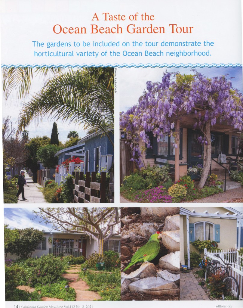 In their annual People in Preservation Awards, San Diego’s Save Our Heritage Organisation (SOHO) recognized the great work of OB Historical Society’s Susan and Pat James in the preservation and enhancement of Ned Titlow’s Wisteria Cottage in Ocean Beach. The OB Landmark is graced by the century old Wisteria vine which covers the patio and adorns the front of the cottage. SOHO also noted the couple’s continuing efforts in hosting the biennial Wisteria Garden Party. Congratulations to Pat and Susan! A very well deserved honor.